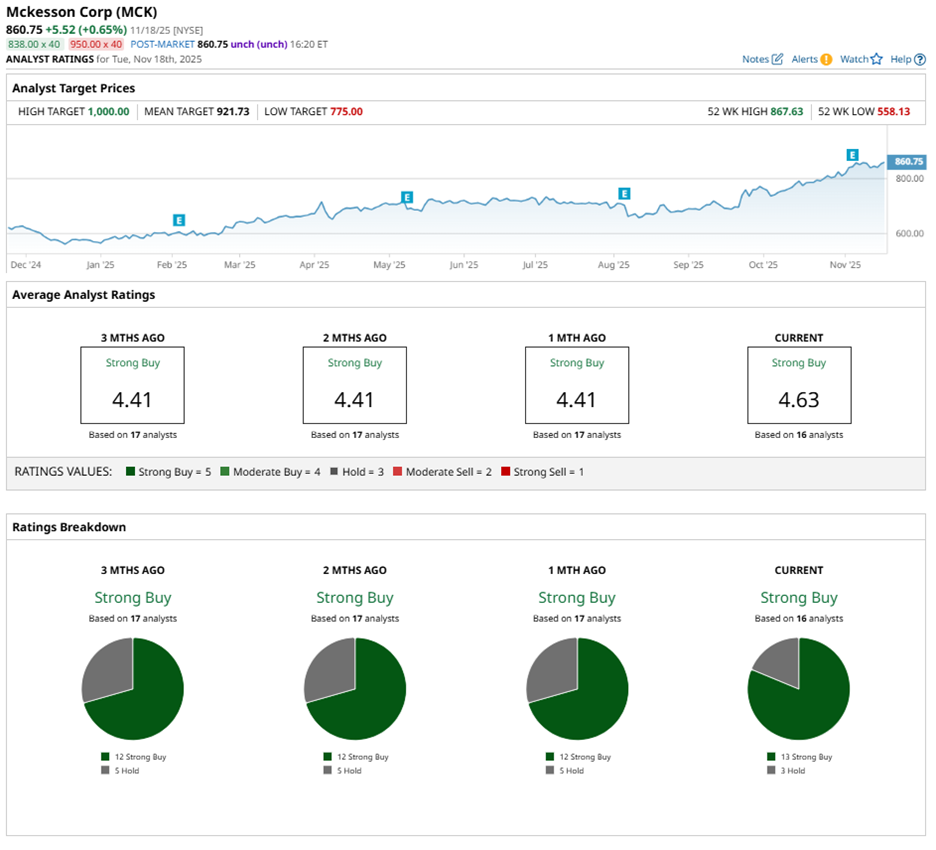 Following its Q2 results, Baird analyst Eric Coldwell raised MCK’s price target on Nov. 6 to $927 from $873, reinforcing its “Outperform” stance and signaling confidence in the company’s momentum.