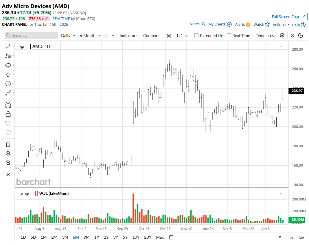 AMD is a leading semiconductor company that designs chips for graphics and high-performance computing solutions. It serves multiple industries, including gaming, personal computing, data centers, and artificial intelligence (AI) workloads. AMD is headquartered in Santa Clara, California.