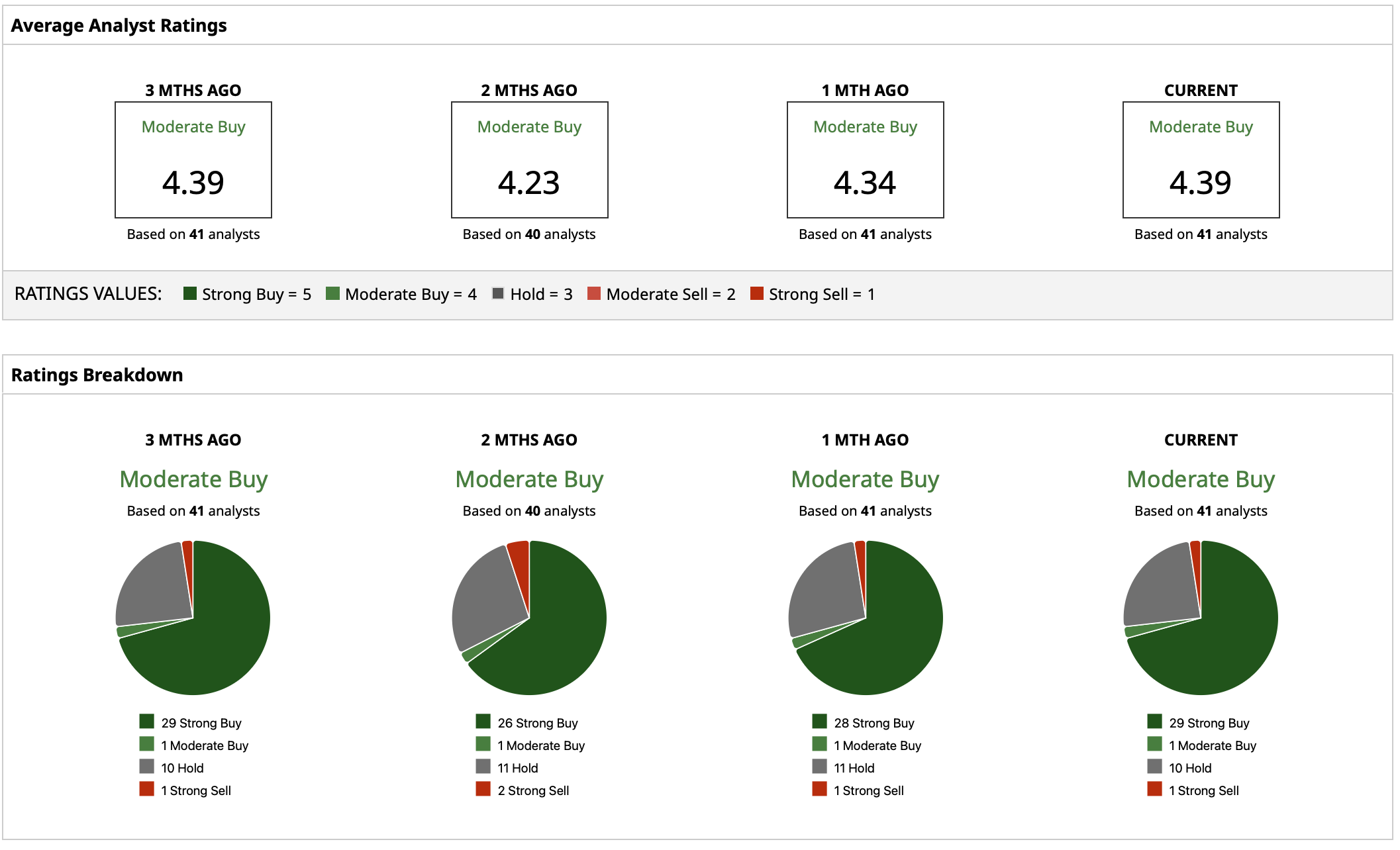 Analysts on Wall Street are overall positive about Oracle despite the current volatility in the ORCL stock price. Oracle is covered by 41 analysts with a “Moderate Buy” consensus rating.