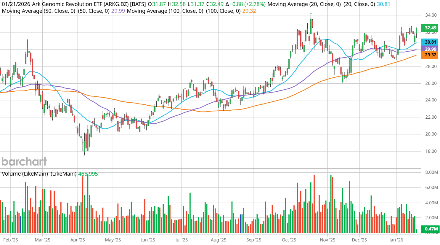For those investors with a healthier risk appetite, there’s the Cathie Wood-helmed Ark Genomic Revolution ETF (ARKG), which skews more heavily toward AI-powered biotechs and genetic innovators.