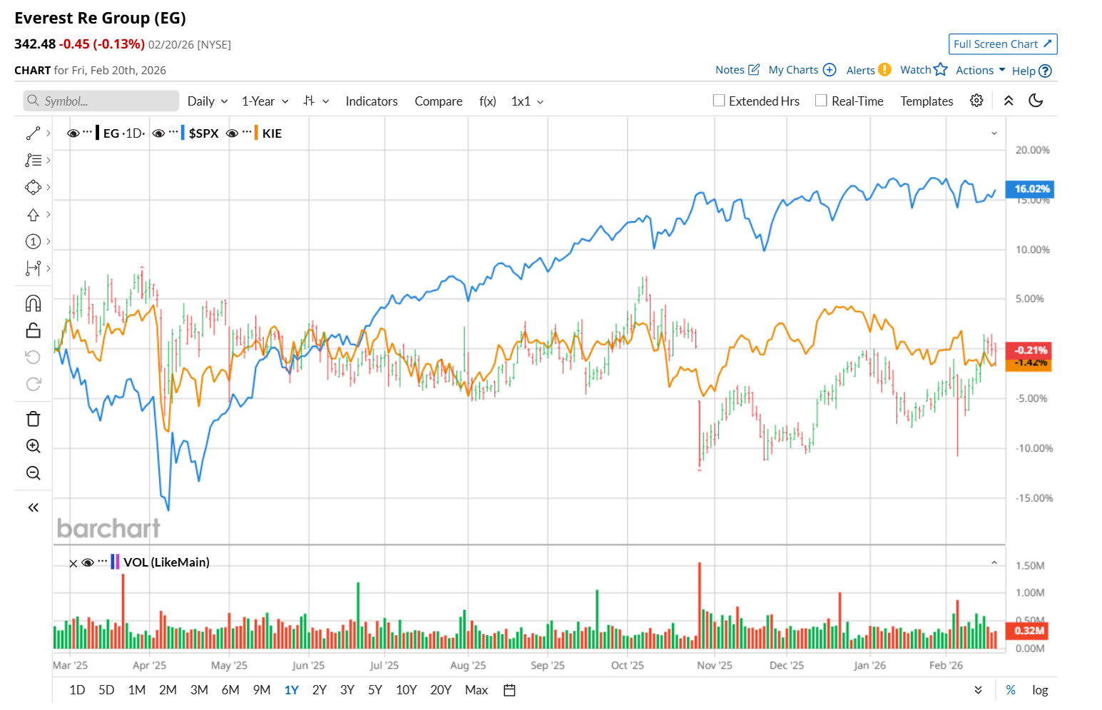 Zooming in further, EG has outpaced the State Street SPDR S&P Insurance ETF (KIE), which declined marginally over the past 52 weeks and dropped 4.1% on a YTD basis.