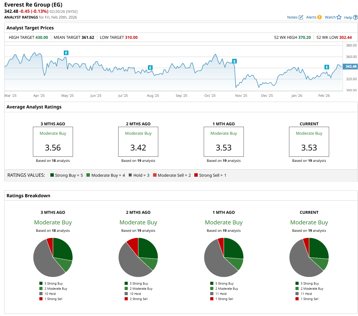 On Feb. 12, Bob Huang from Morgan Stanley (MS) maintained a “Hold" rating on EG, with a price target of $330.