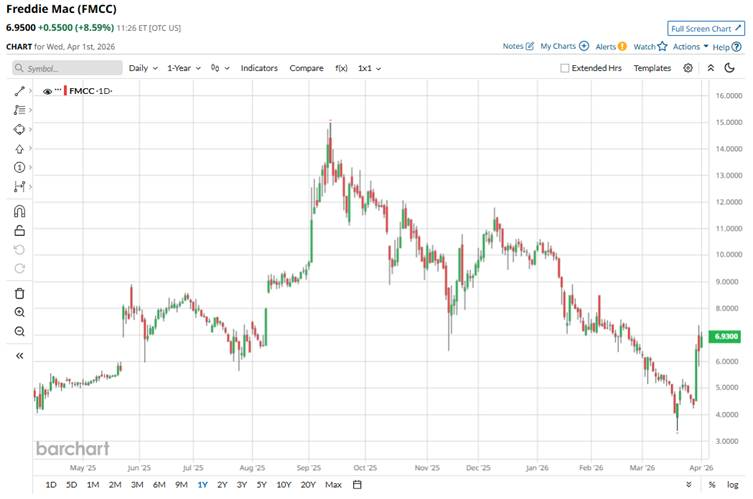 Moreover, the stock has shown signs of extreme short-term volatility and dramatic spikes lately. On March 30, FMCC staged a rebound, surging as much as 47.3% intraday, its biggest single-day gain in over a decade, following bullish commentary from Bill Ackman. This was followed by a slight decline in the next session.