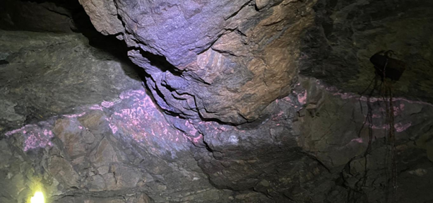 Figure 4: Typical pinkish cobalt oxides exposed on a wall of G4.