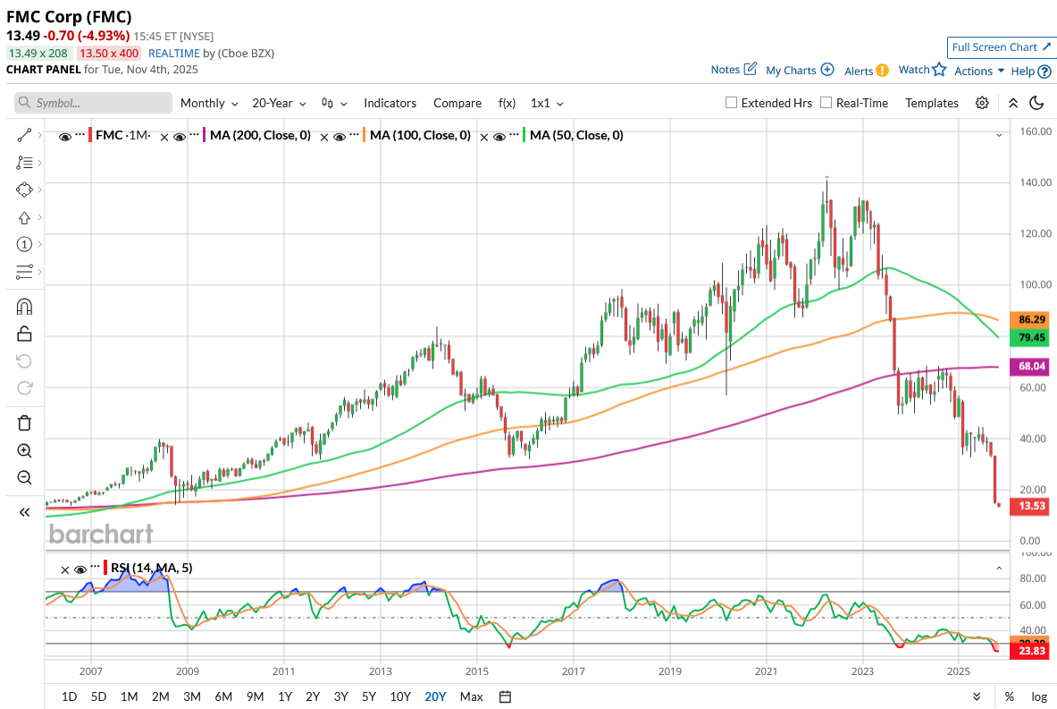 FMC Corporation (FMC) plunged last week after the company missed Q3 2025 revenue estimates by a mile. It also slashed its dividend by 86% to 8 cents, which is still a healthy dividend yield of over 2.2% at current prices. Let's explore whether FMC is a buy after the crash or if you should give the stock a pass.
