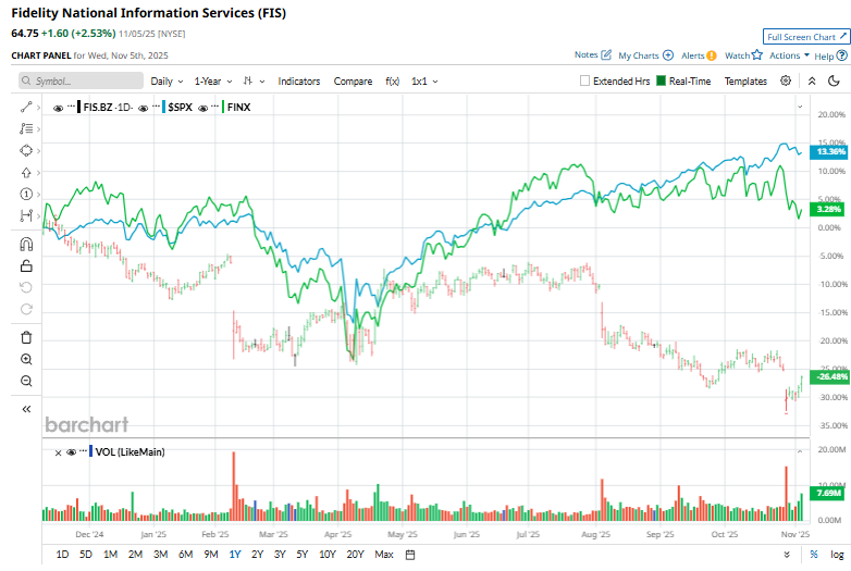 Shares of the fintech giant have struggled to keep up with the broader market over the past year. FIS has declined 25.2% over this time frame, while the broader S&P 500 Index ($SPX) has rallied nearly 17.5%. Moreover, in 2025, FIS stock is down 19.8%, compared to the SPX’s 15.6% rise on a YTD basis.