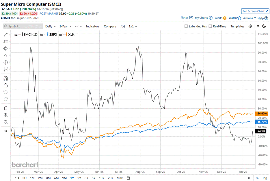 SMCI stock has grown 4.9% over the past 52 weeks, underperforming the S&P 500 Index’s ($SPX) 16.9% rise and the State Street Technology Select Sector SPDR ETF’s (XLK) 26.4% return during the same time frame.