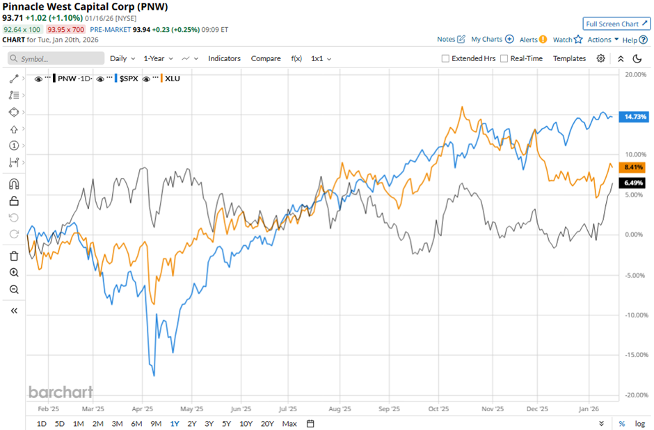 PNW stock has risen 8.2% over the past 52 weeks, lagging behind the S&P 500 Index's ($SPX) 16.9% gain and the State Street Utilities Select Sector SPDR ETF's (XLU) 9.4% return over the same period.