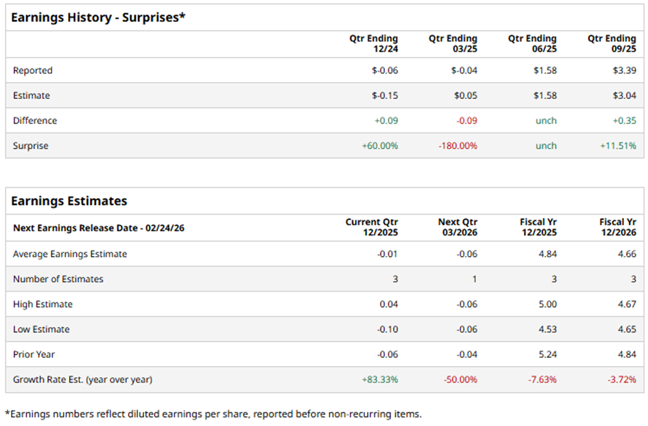 The Phoenix, Arizona-based company is expected to unveil its fiscal Q4 2025 results soon. Before the event, analysts anticipate PNW to report a loss of $0.01 per share, an 83.3% improvement from a loss of $0.06 per share in the year-ago quarter. It has exceeded or met Wall Street's bottom-line estimates in three of the past four quarters while missing on another occasion.