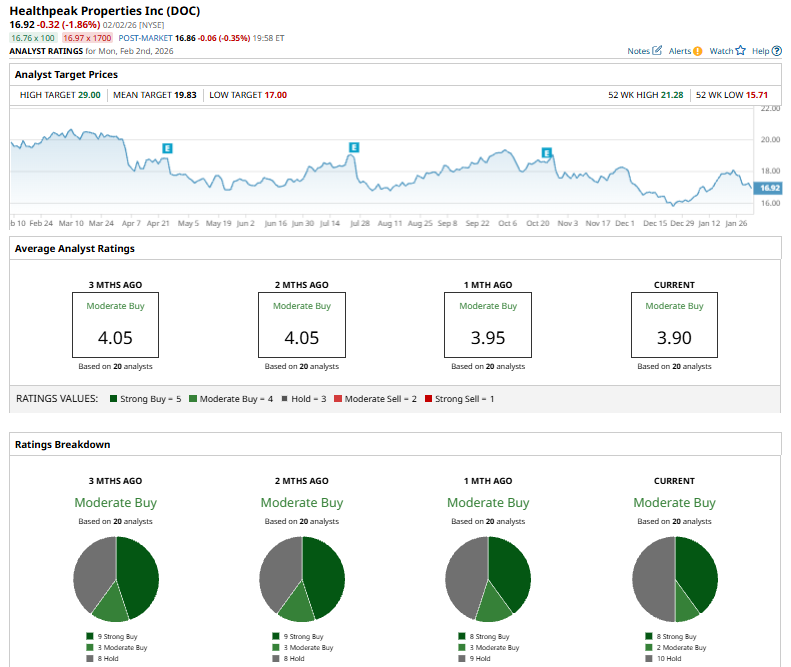 The mean price target of $19.83 represents a 17.2% premium from DOC’s current price levels, while the Street-high price target of $29 suggests an ambitious upside potential of 71.4%.