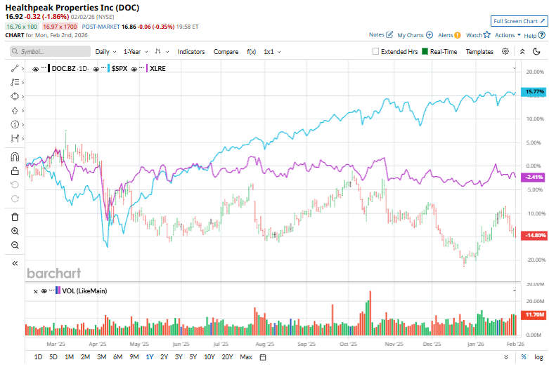 This healthcare REIT has considerably underperformed the broader market over the past 52 weeks. Shares of DOC have declined 18.1% over this time frame, while the broader S&P 500 Index ($SPX) has gained 15.5%. However, on a YTD basis, the stock is up 5.2%, surpassing SPX’s 1.9% uptick.