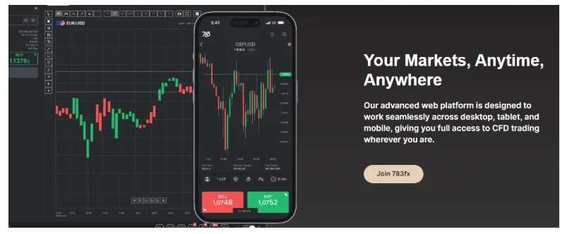 In this 783FX.com review, we examine how the platform structures its CFD trading environment, the markets available to traders, and the tools designed to support decision-making and account management.