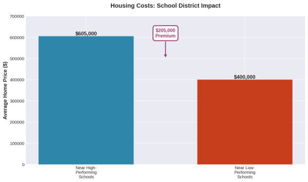 These premiums essentially force families into a financial corner. Parents who want quality public education must either afford expensive housing or accept inferior schooling. There's no middle ground in the traditional model.