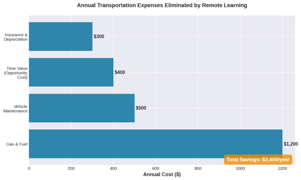 These calculations use conservative estimates. Families who leverage remote learning for geographic arbitrage—moving to lower-cost regions or countries—can save significantly more. Research confirms these financial benefits extend to both educational institutions and students, with institutions reducing facility costs while students mitigate commuting, housing, and material expenses.