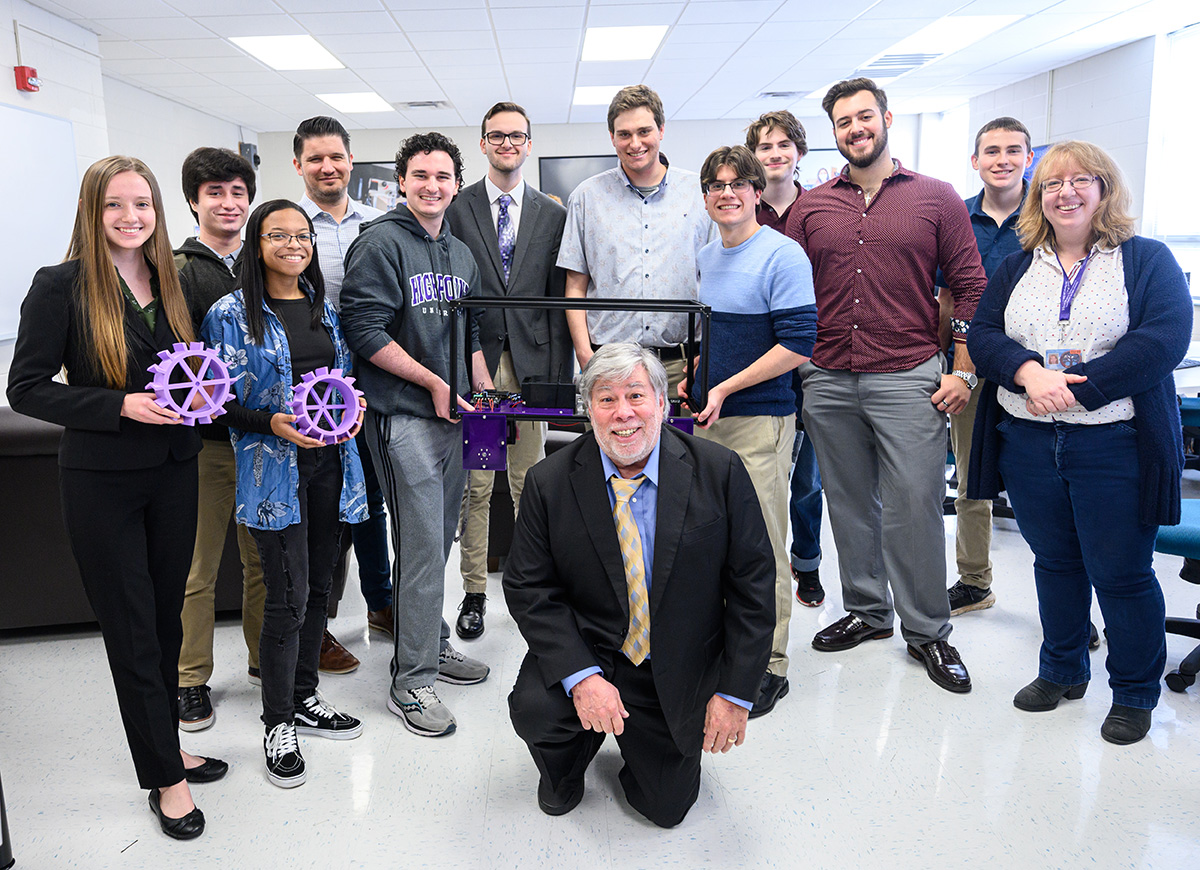 Costantino serves as president of HPU’s robotics team, which is in its first year and has been accepted into a NASA competition. Team members showed Wozniak their design for a robot with the ability to work on the moon, move across rough terrain, and collect and retrieve certain materials. Wozniak listened to the team’s ideas, asked questions and encouraged their efforts for not only building a robot but teaching younger students in the community about robotics.