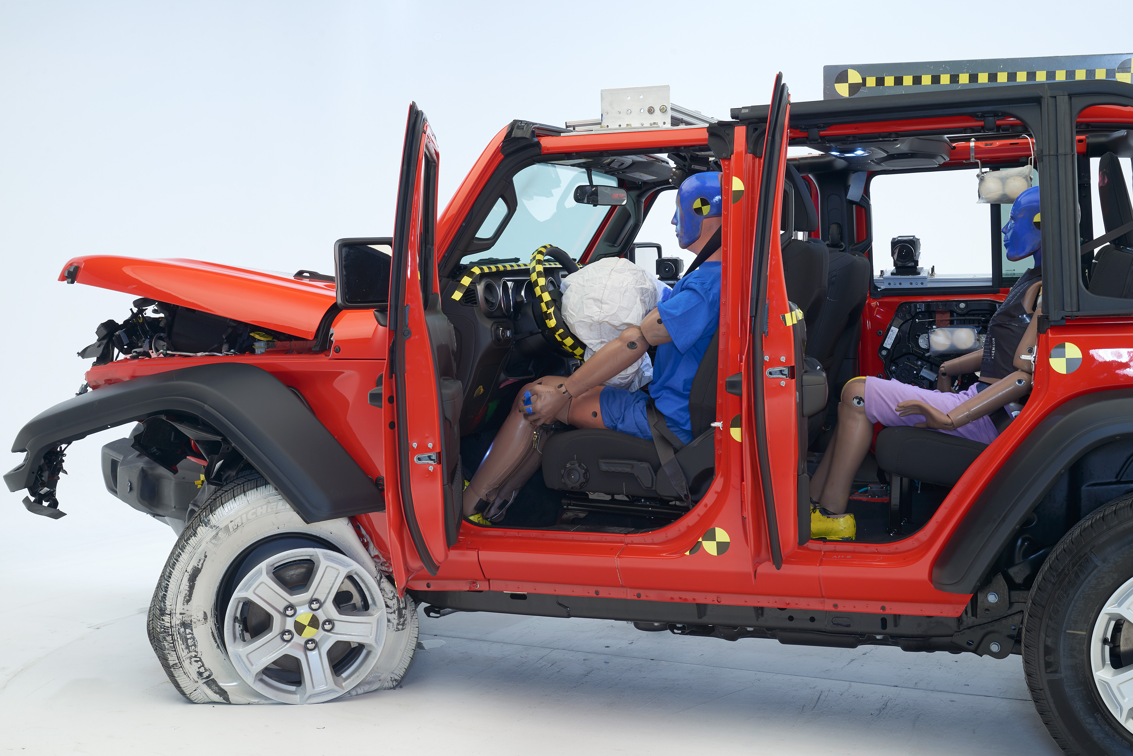 The Wrangler lacks a side curtain airbag in the rear. The lap belt also moved from the ideal position on the pelvis onto the abdomen during the test.