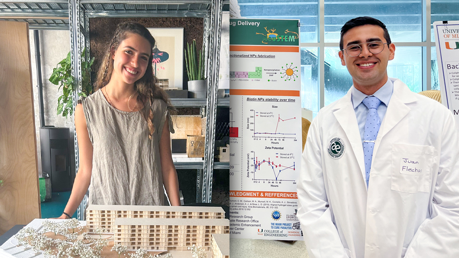Juan Fernando Flechas Beltran, a senior majoring in biomedical engineering with a biomaterials and tissue concentration, also received an award from the Angelo Family Endowment Fund to help fund his internship last summer with the NeuStem Research Group at The Miami Project to Cure Paralysis.