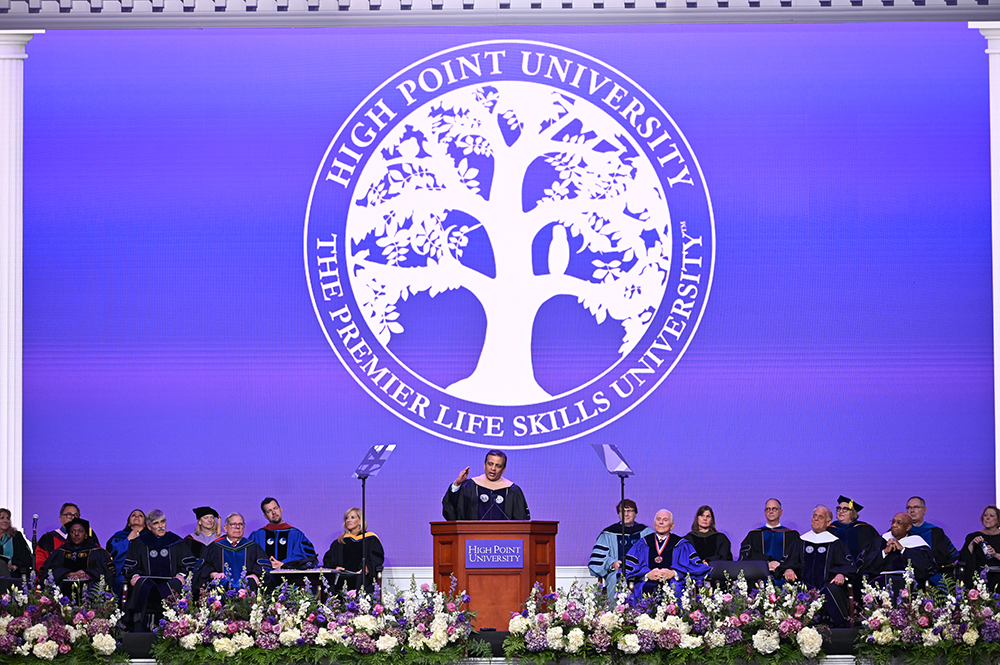 “I hope you turn this time of uncertainty into an opportunity for global change and purpose. I hope you recognize your ability to uplift minds, transform lives and inspire hearts. I hope you grow to understand that legacy is not what you achieve but what you help others achieve. I know you will become disruptors who cherish every moment. Because of you I have faith in the future. Thank you, High Point University Class of 2025, for giving us all hope. Now go ahead and disrupt the world.”