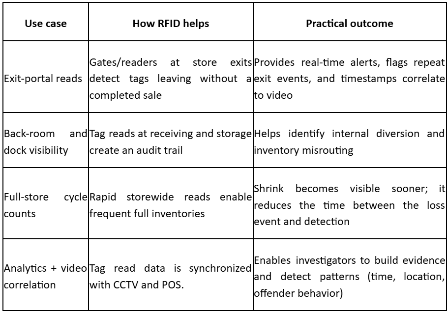 RFID is valuable in loss prevention in three ways, which can be seen: